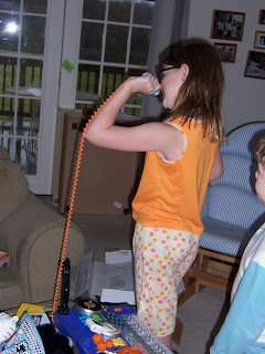 Let me just say that music has been a huge part of my children’s lives. All three attended Kindermusik classes at one time or another (Thanks, Miss Gigi!). The favorite toy at some point for all three was the basket of shakers and musical instruments. My daughters took piano lessons. My middle daughter still plays the clarinet very well. My son is too young for music lessons, but even he likes to play a song of his own making or jam on the drum kit he got last Christmas (Thanks, in laws!).