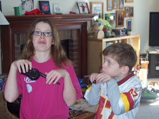 In his photo, my 10-year-old is holding a Walkie Talkie and my 5-year-old is holding a Lego Star Wars guy. Now, what did they want to do?